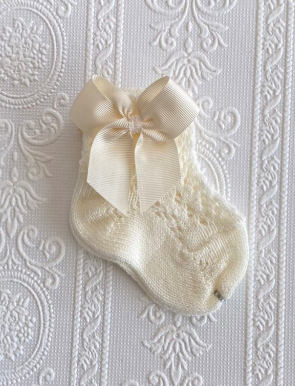 COTTON CROCHET SOCKS WITH RIBBONS BOTH SIDES