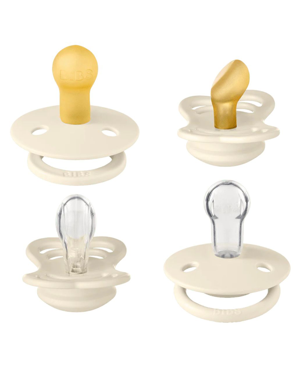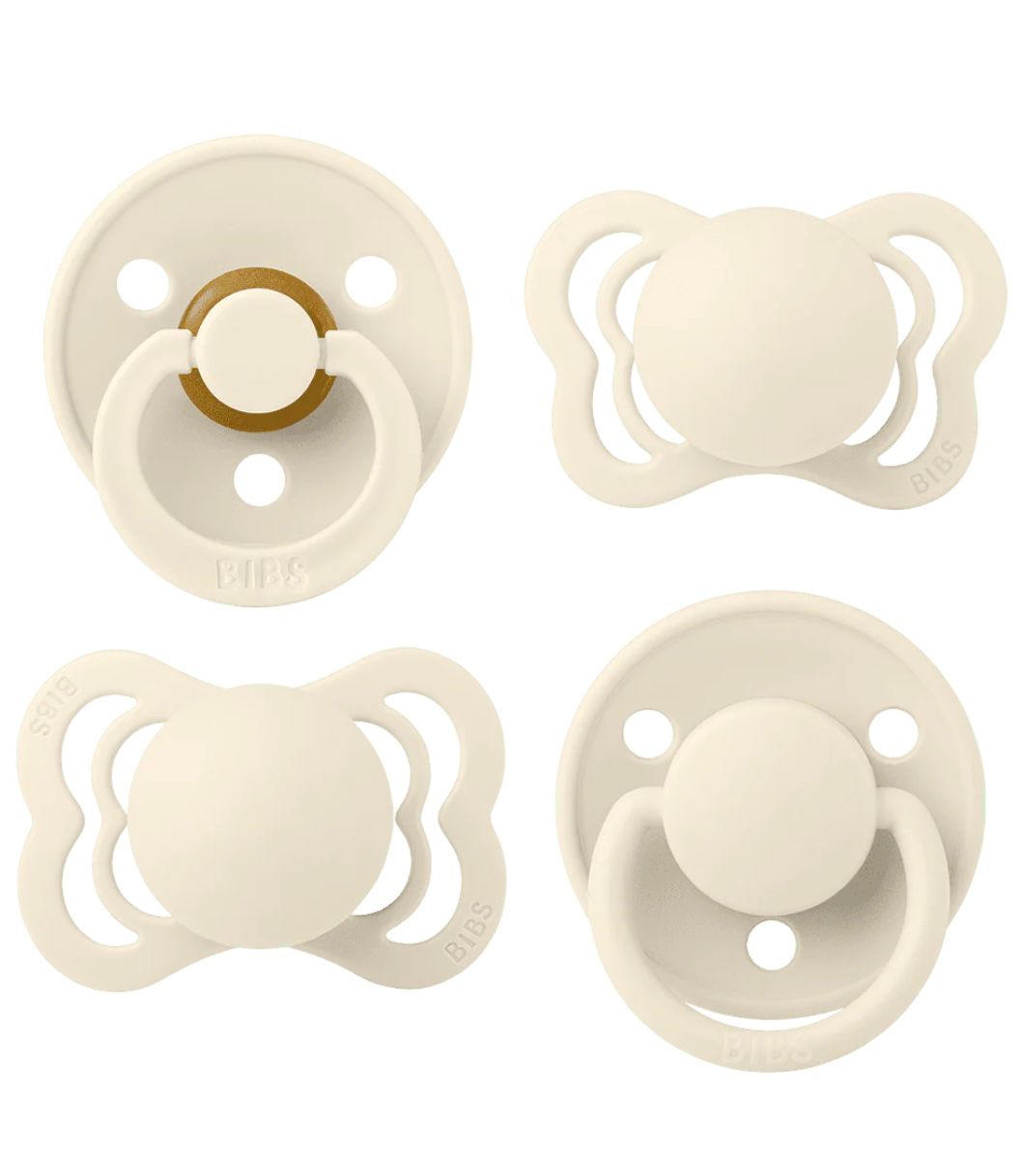 FOUR DIFFERENT PACIFIERS WITH A NATURAL RUBBER SILICONE,