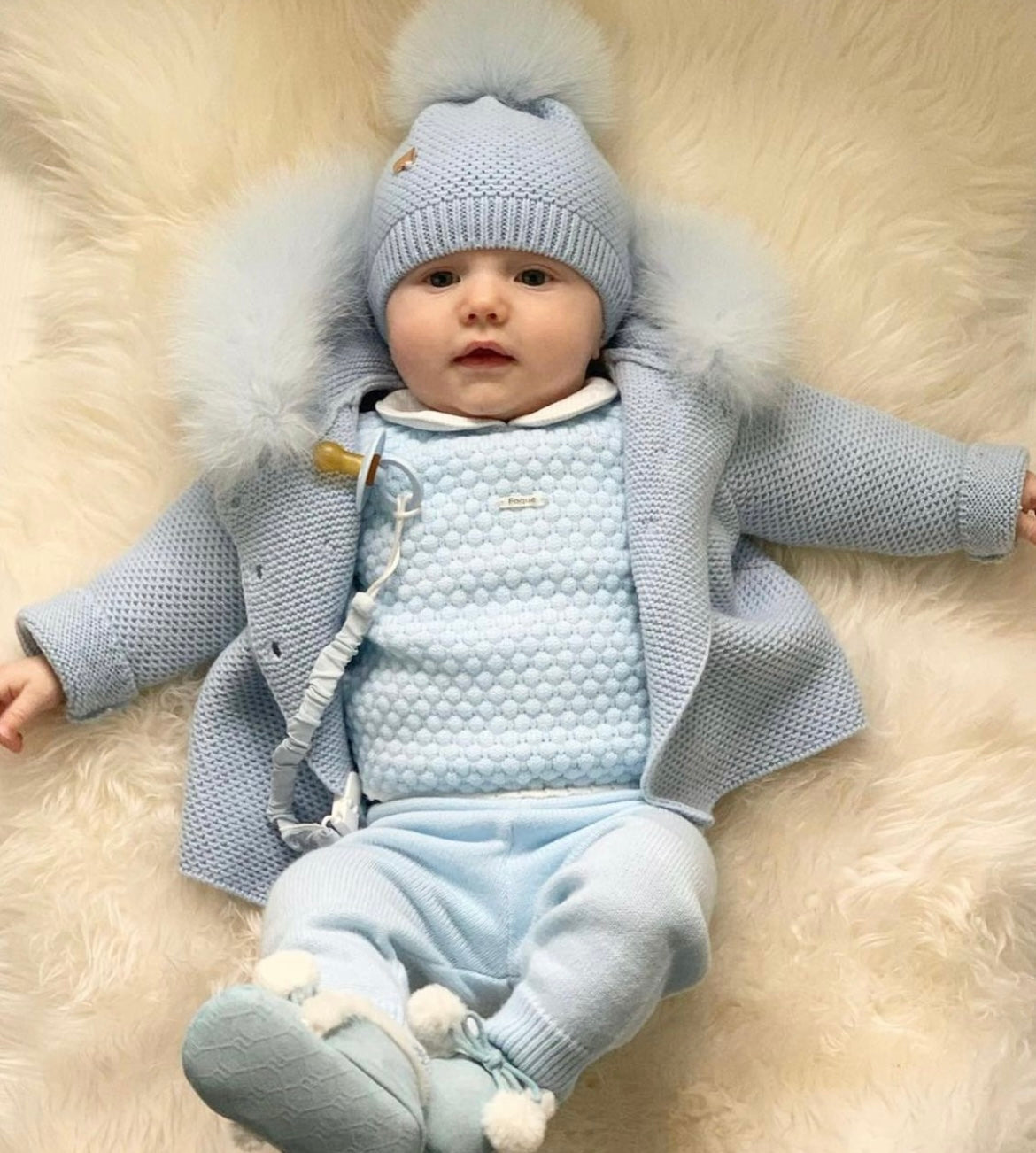BABY ACRYLIC WOOL CAP WITH SOFT FAUX FUR POMPOMS