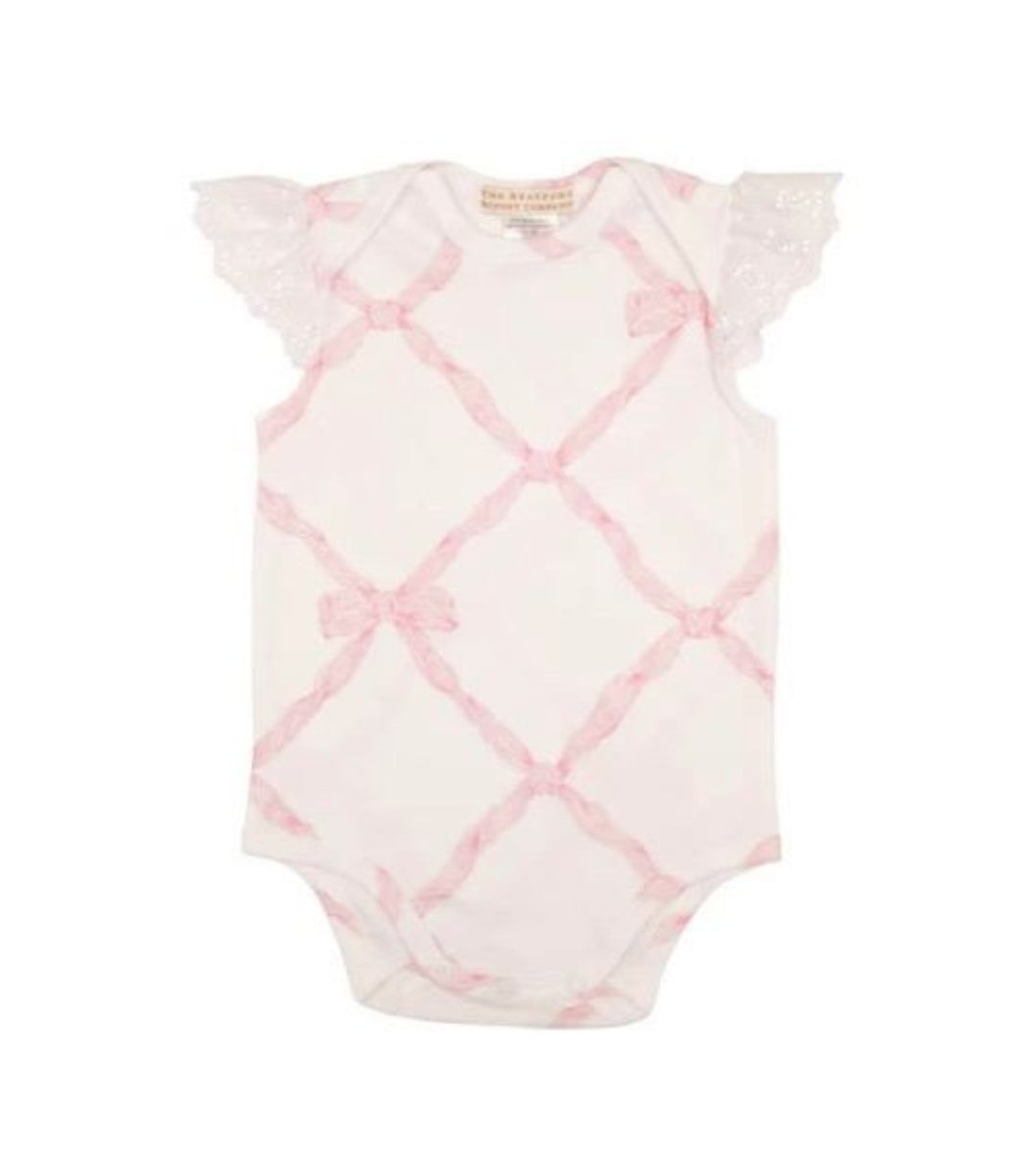 BABY OPEN SLEEVES BODYSUITS WITH PINK KNOT PRINTED.