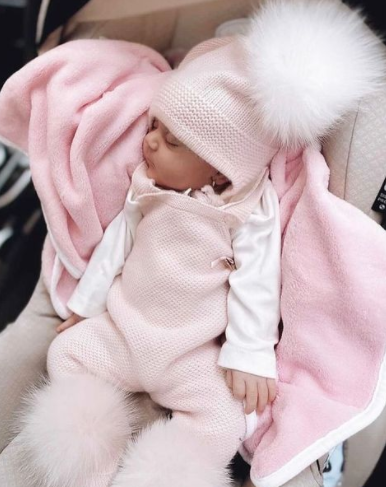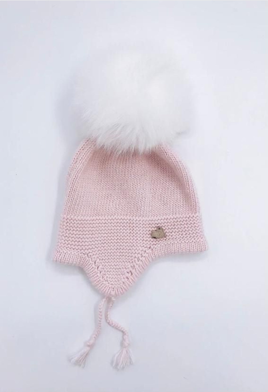 BABY HAT WITH FAUX FUR POMPOMS ON THE TOP