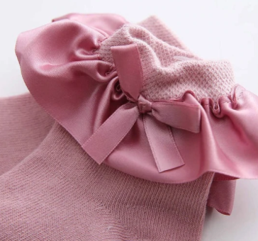 PLAIN BLACK OR PINK SOCKS WITH RIBBON & ROUNDED LACE .